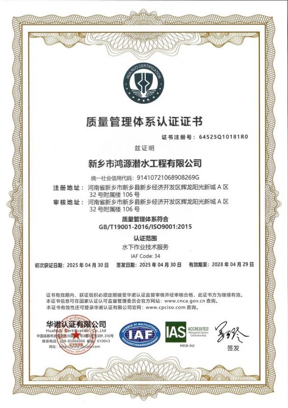 新鄉(xiāng)市鴻源潛水工程有限公司,有從事潛水行業(yè)二十多年的潛水團(tuán)隊(duì)。公司具有獨(dú)立法人資格,注冊(cè)資金600萬(wàn)元。   公司的潛水人員、潛水檢測(cè)人員、潛水焊接人員均經(jīng)過(guò)正規(guī)培訓(xùn),全部持有國(guó)內(nèi)權(quán)威機(jī)構(gòu)頒發(fā)的資質(zhì)證書。我公司水下焊接可靠,質(zhì)量?jī)?yōu)良,技術(shù)過(guò)硬,可水下焊接鋼管樁,水下焊接犧牲陽(yáng)極鋅塊,水下焊接連接梁,水下封堵焊接等等施工,報(bào)價(jià)合理,拒絕暴利,竭誠(chéng)為您服務(wù)!水下電焊工程,水下電焊報(bào)價(jià)合理水廠電廠的水池、水道清淤、泵房清理、管道鋪放、攔污柵清污、更換閘門起落、導(dǎo)流洞、水庫(kù)壩體等維修施工水下補(bǔ)強(qiáng)加固:對(duì)水利電力系統(tǒng)水庫(kù)、大壩及沿海內(nèi)河港口、碼頭等水工建筑物水下鋼結(jié)構(gòu)或混凝土結(jié)構(gòu)缺陷進(jìn)行。無(wú)論是對(duì)現(xiàn)在或?qū)?lái),都將是一項(xiàng)非常有意義的工作。水下焊接將成為水下作業(yè),水下安裝,水下維修等水下作業(yè)工程中不可或缺的重要工藝手段.公司堅(jiān)持“先進(jìn)的技術(shù)設(shè)備.優(yōu)質(zhì)的服務(wù)質(zhì)量.服務(wù)效率.熱情的服務(wù)態(tài)度,為生產(chǎn)經(jīng)營(yíng)理念,以拒絕暴利合理收費(fèi)為原則立足全國(guó)市場(chǎng)。我們將以優(yōu)質(zhì)的產(chǎn)品與售后服務(wù)來(lái)打造用戶良好體驗(yàn)。愿同新老客戶竭誠(chéng)合作、互惠互利、共創(chuàng)輝煌!水下電焊工程,水下電焊報(bào)價(jià)合理,鋼圍堰清淤公司鴻源-水下電焊工程,水下電焊報(bào)價(jià)合理,鋼圍堰清淤公司,水下電焊工程。      新鄉(xiāng)市鴻源潛水工程有限公司我公司成功打造鴻源優(yōu)質(zhì)服務(wù)。公司的潛水人員、潛水檢測(cè)人員、潛水焊接人員均經(jīng)過(guò)正規(guī)培訓(xùn),全部持有國(guó)內(nèi)權(quán)威機(jī)構(gòu)頒發(fā)的資質(zhì)證書。經(jīng)過(guò)多年經(jīng)營(yíng),公司具備公司具有獨(dú)立法人資格。